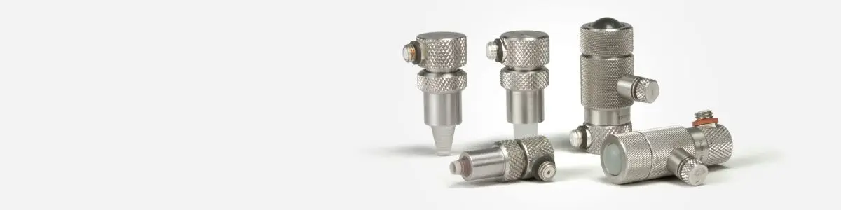 水浸式探头的配件有助于完成水浸应用并充分发挥水浸检测技术。这些配件包括起泡器、水浸箱、反射镜和搜寻管。反射镜 在无法进行直接检测时,反射镜可以导引声束 标准反射镜可对声束进行90°反射 外壳样式 入射角度